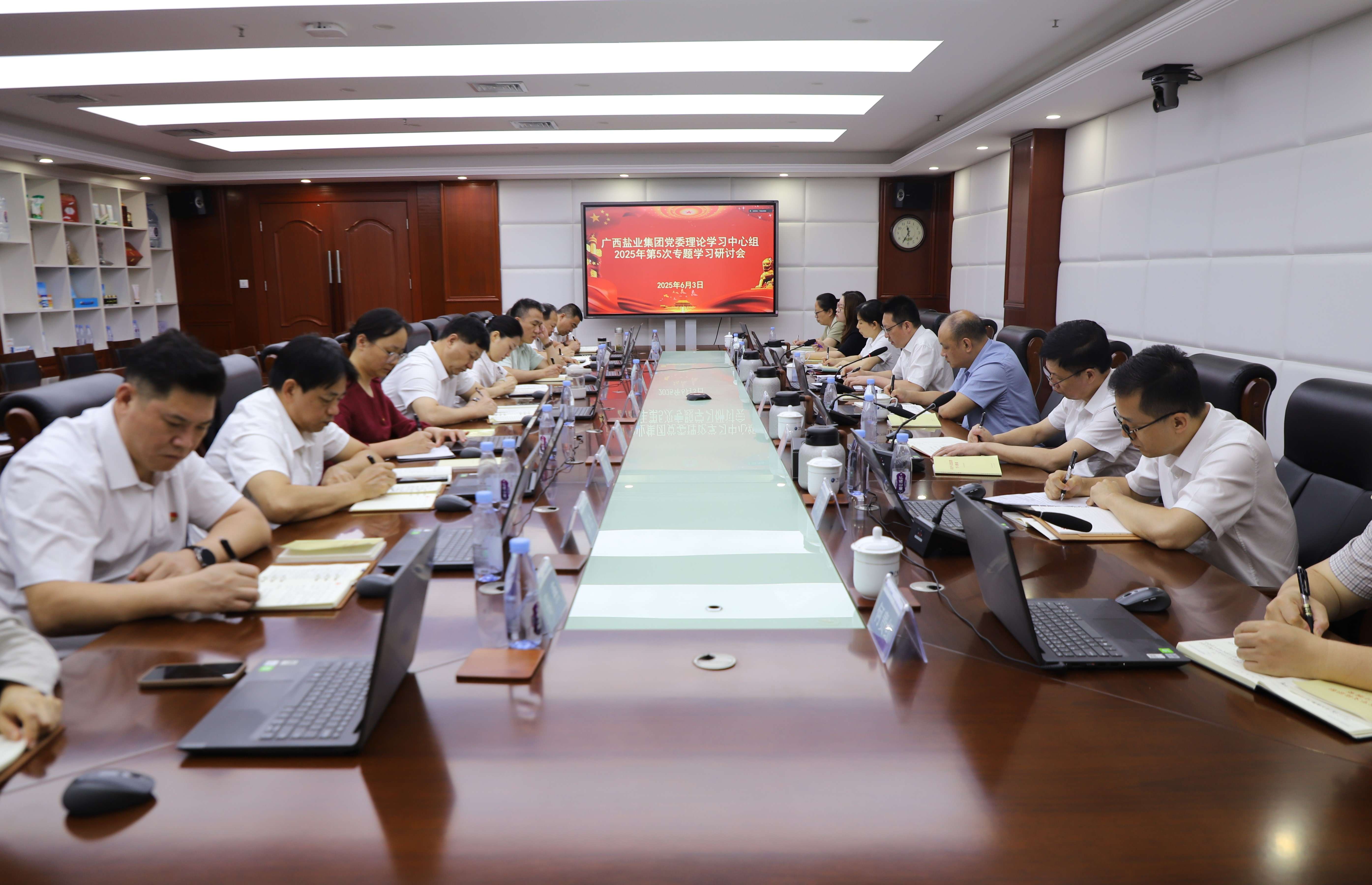 6月3日,廣西鹽業(yè)集團黨委召開理論學習中心組2025年第五次專題學習會。集團公司黨委書記、董事長邱潮涌主持會議并談學習體會,領(lǐng)導班子成員結(jié)合會議主題談學習體會。